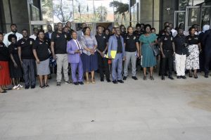 Some of the staff pose for a group photo after World AIDS Day commemoration at the Office of the Prime minister in Kampala on Monday