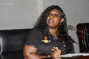 The Under Secretary, Finance & Administration Ms. Patricia E. Lakidi presenting the PS’ remarks during the AIDS Day commemoration