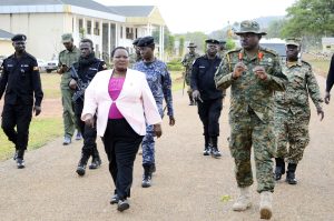 The Director NALI Col. Okei Rukogota taking the Premier on a guided tour of Kyankwanzi National Leadership Institute