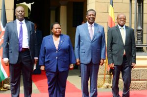 Uganda’s Prime Minister Robinah Nabbanja (second left) and Kenya’s Prime Cabinet Secretary Musalia Mudavadi (second right) in a group photo together with Uganda’s Minister of State for Internal Affairs (extreme left) and Minister of State for Finance Amos Lugoloobi (extreme right) in Nairobi yesterday